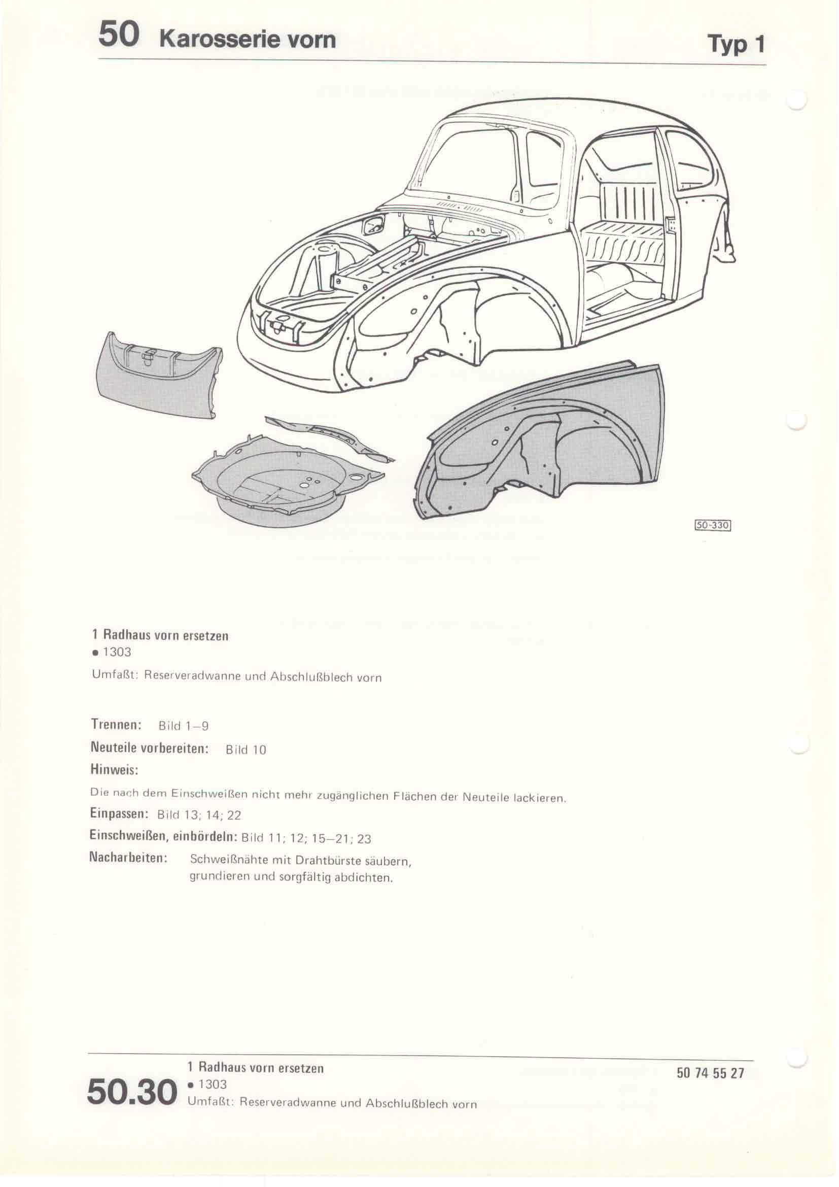 Karosserie Reparatur-Leitfaden Typ 1 April 1975, Seite 50.30