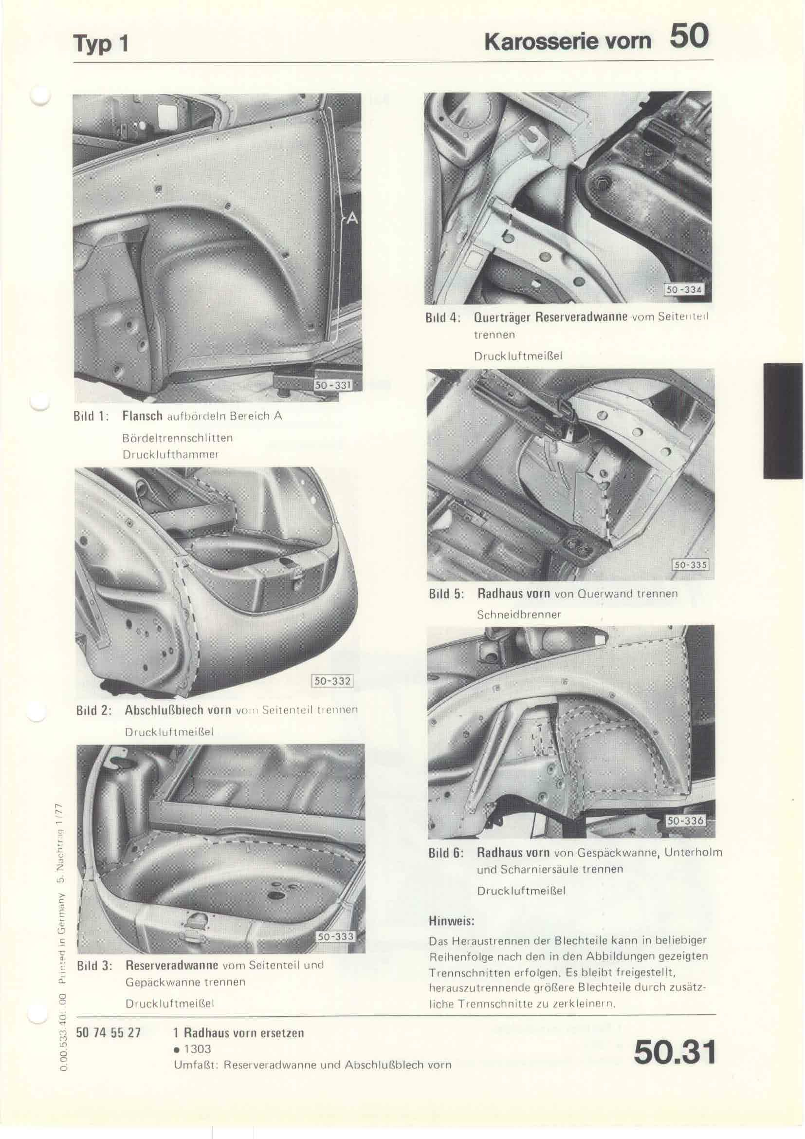 Karosserie Reparatur-Leitfaden Typ 1 April 1975, Seite 50.31