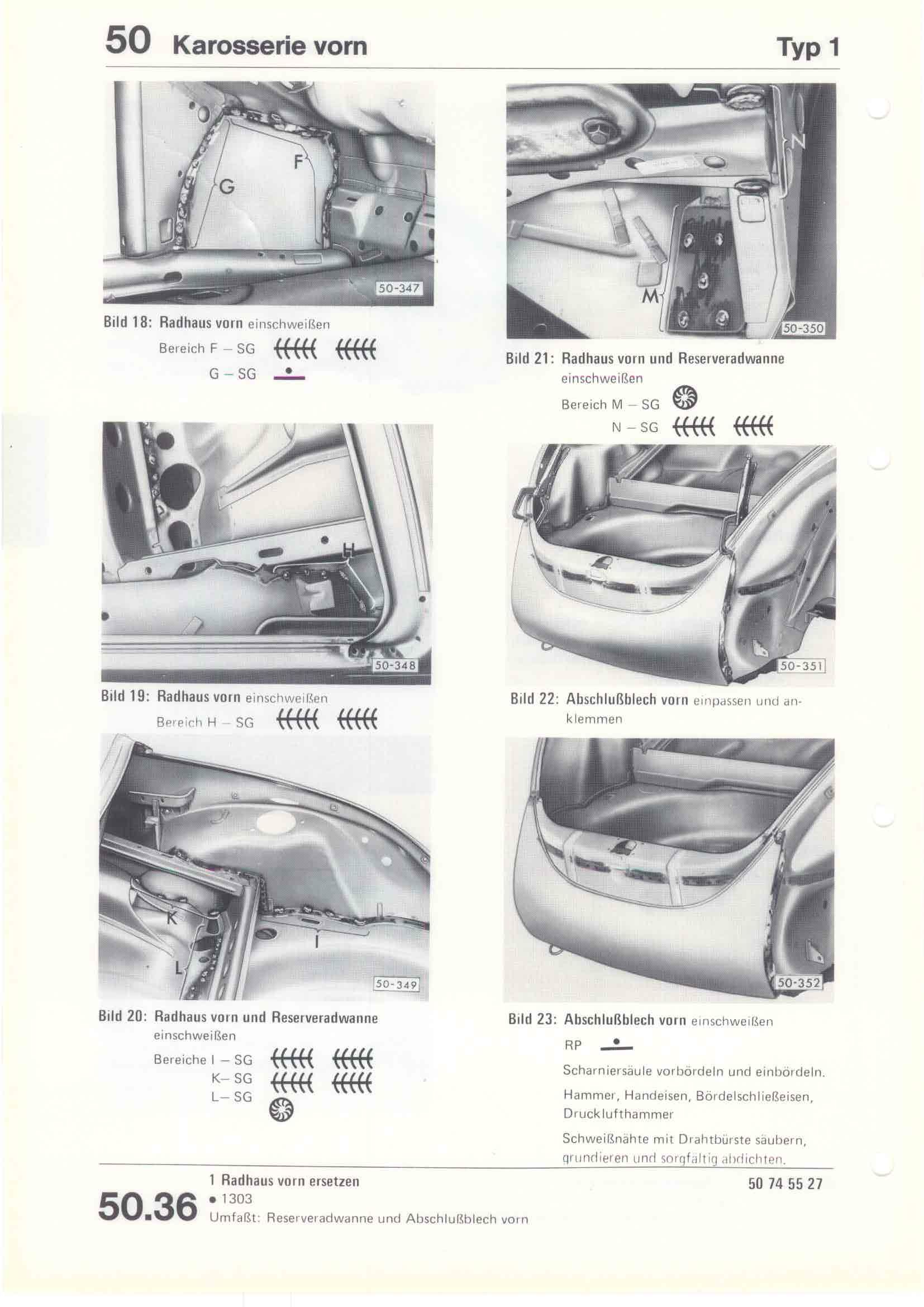 Karosserie Reparatur-Leitfaden Typ 1 April 1975, Seite 50.36