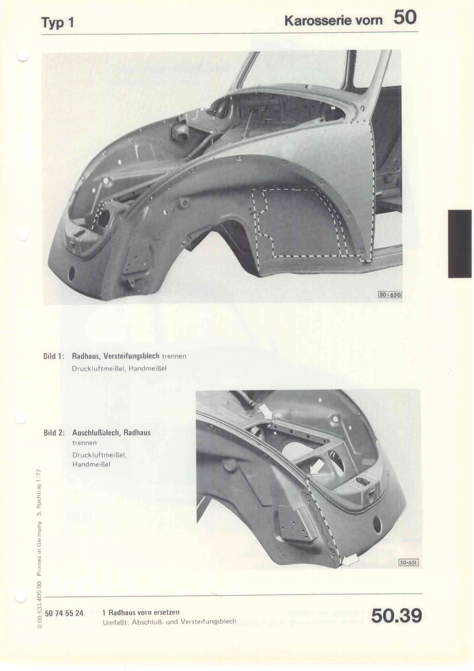 Karosserie Reparatur-Leitfaden Typ 1 April 1975, Seite 50.39
