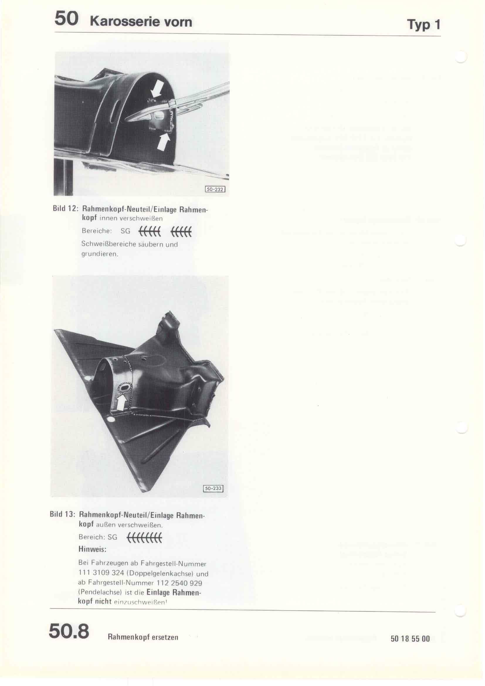 Karosserie Reparatur-Leitfaden Typ 1 April 1975, Seite 50.8