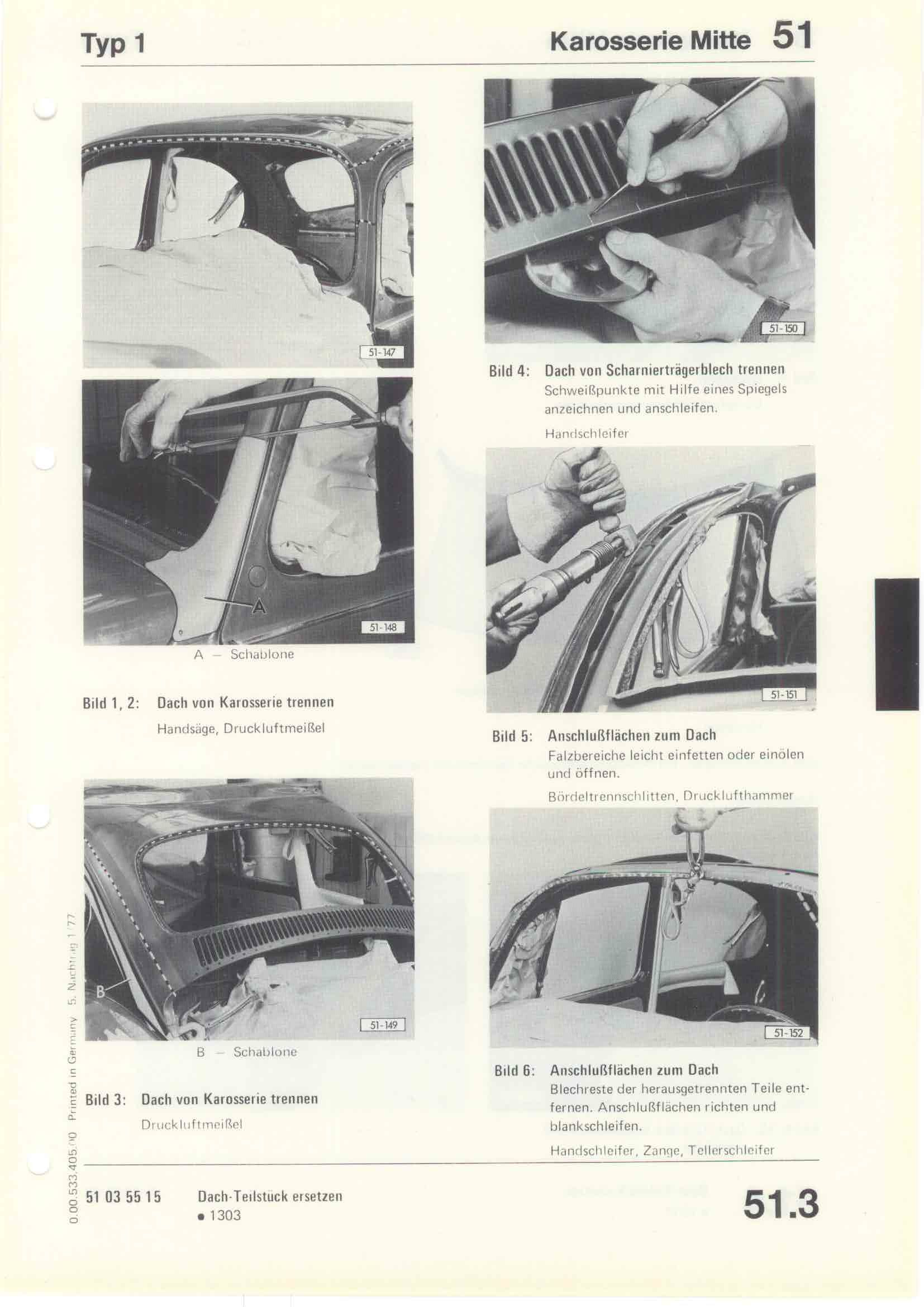 Karosserie Reparatur-Leitfaden Typ 1 April 1975, Seite 51.3