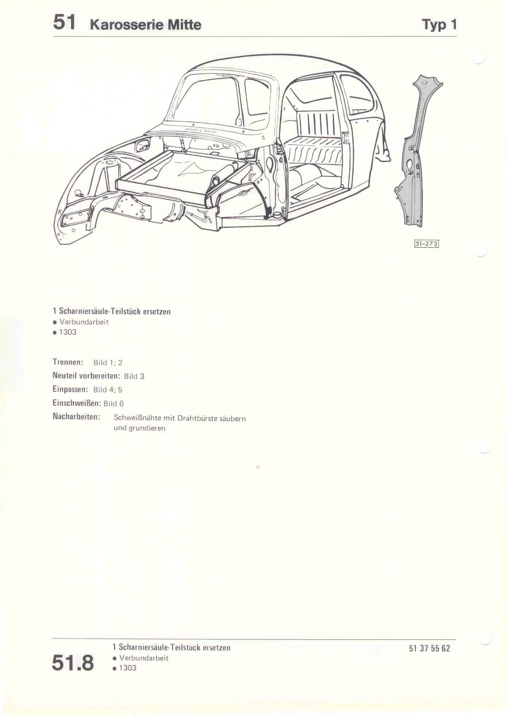 Karosserie Reparatur-Leitfaden Typ 1 April 1975, Seite 51.8