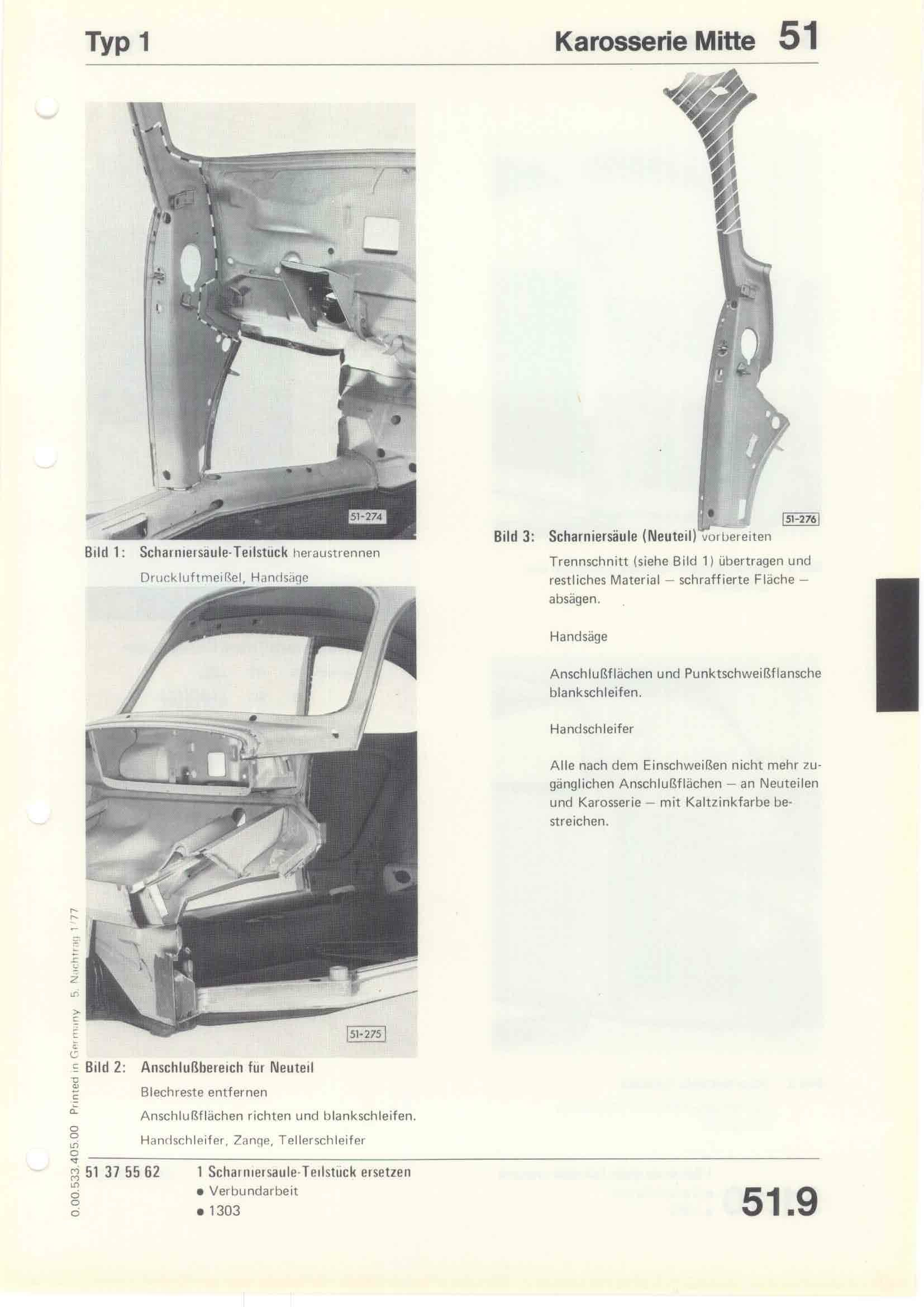 Karosserie Reparatur-Leitfaden Typ 1 April 1975, Seite 51.9