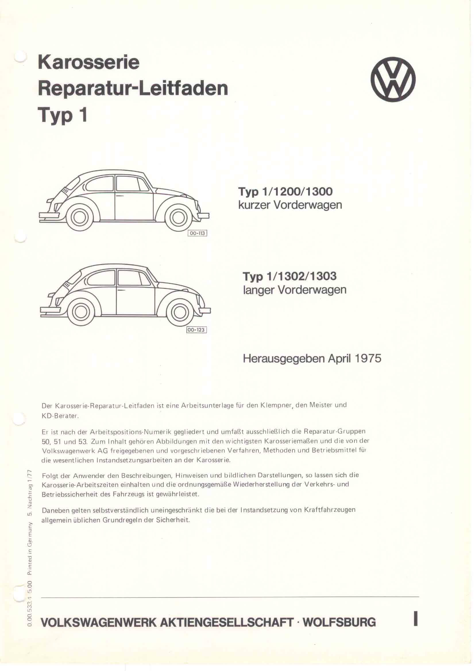 Karosserie Reparatur-Leitfaden Typ 1 April 1975, Seite i