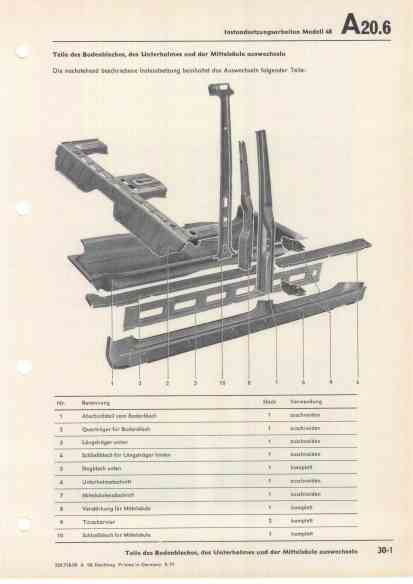 Bodenblech-, Unterholm- und Mitteläulenteile auswechseln