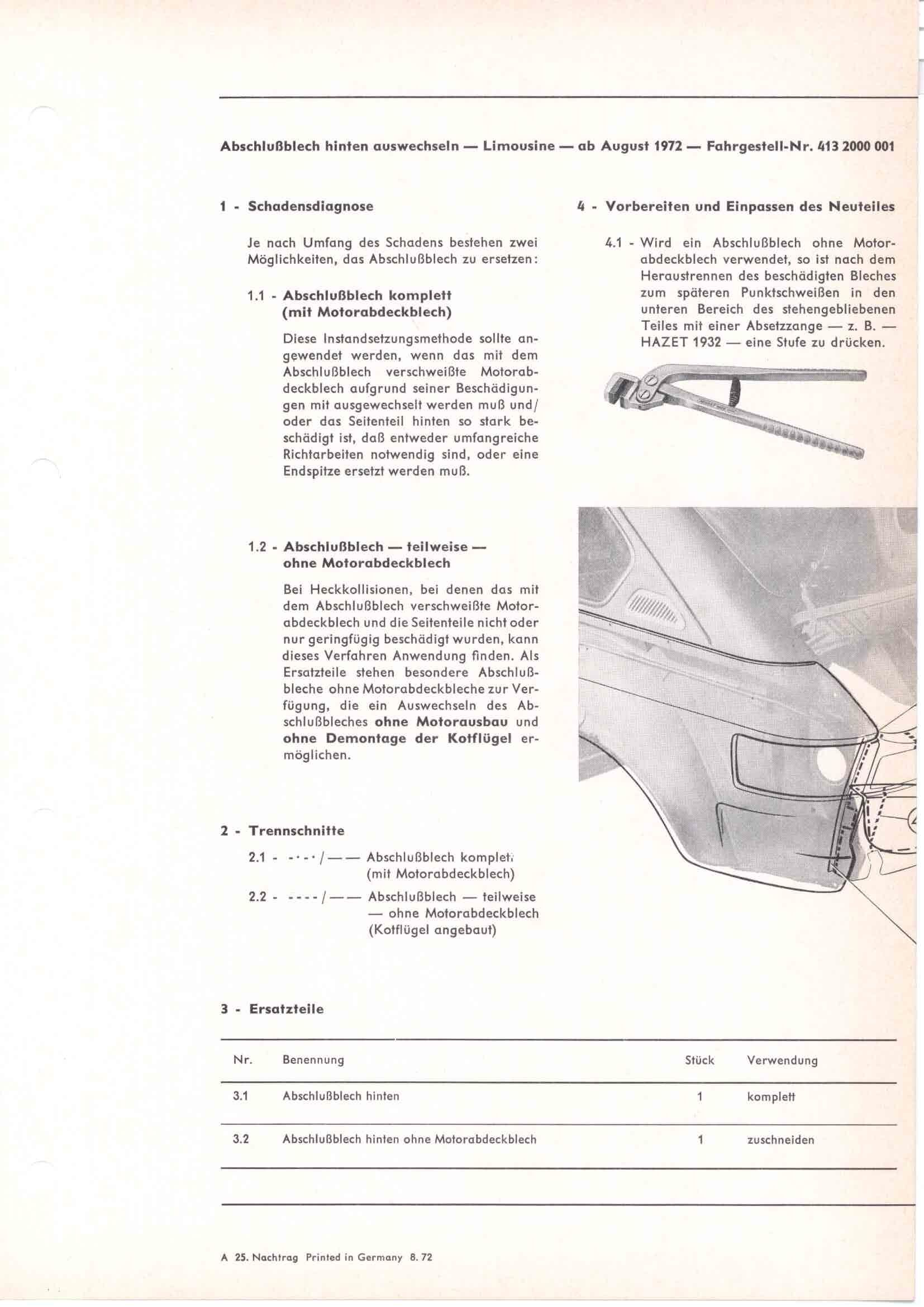 Abschlußblech hinten auswechseln - Limousine - ab August 1972 -