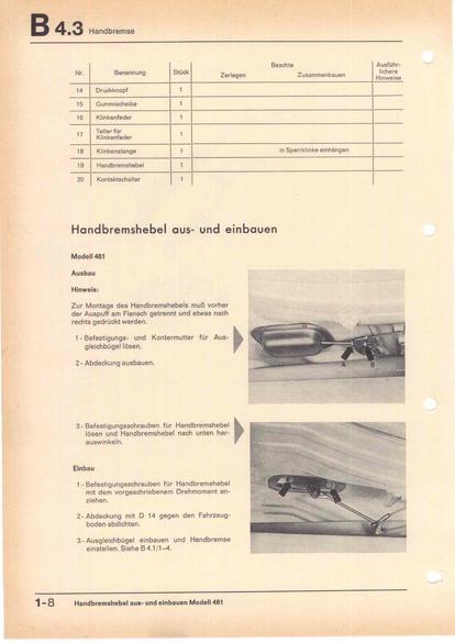 Handbremshebel aus- und einbauen - Typ 48