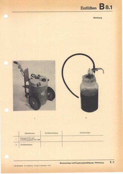 Bremsanlage und Kupplungsbetätigung / Werkzeug (siehe auch: