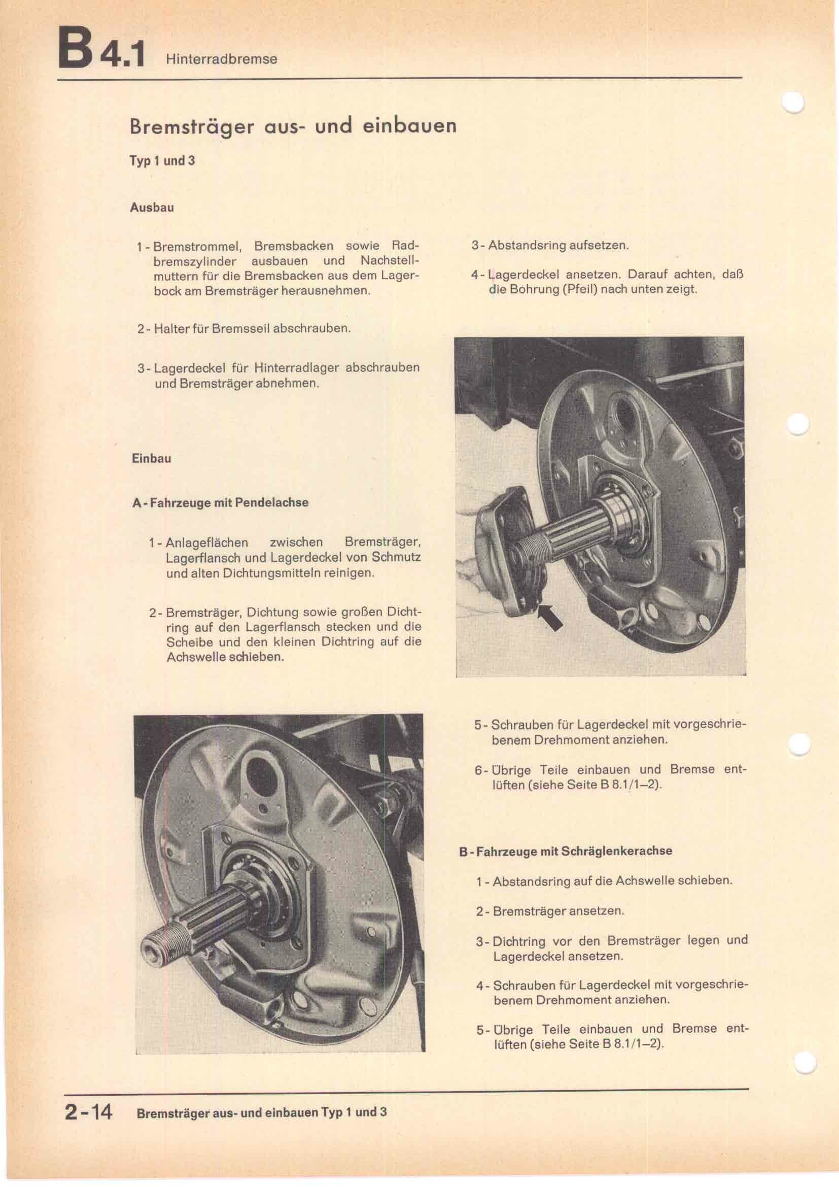 Bremsträger aus- und einbauen - Typ 1 und 3