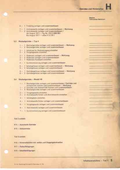 RLF Getriebe u. Hinterachse I, Inhalt Seite 09 (03/73)