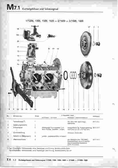 Kurbelgehäuse und Schwungrad 1/1200, 1300, 1500, 1600 - 2/1600 - 3/1500, 1600