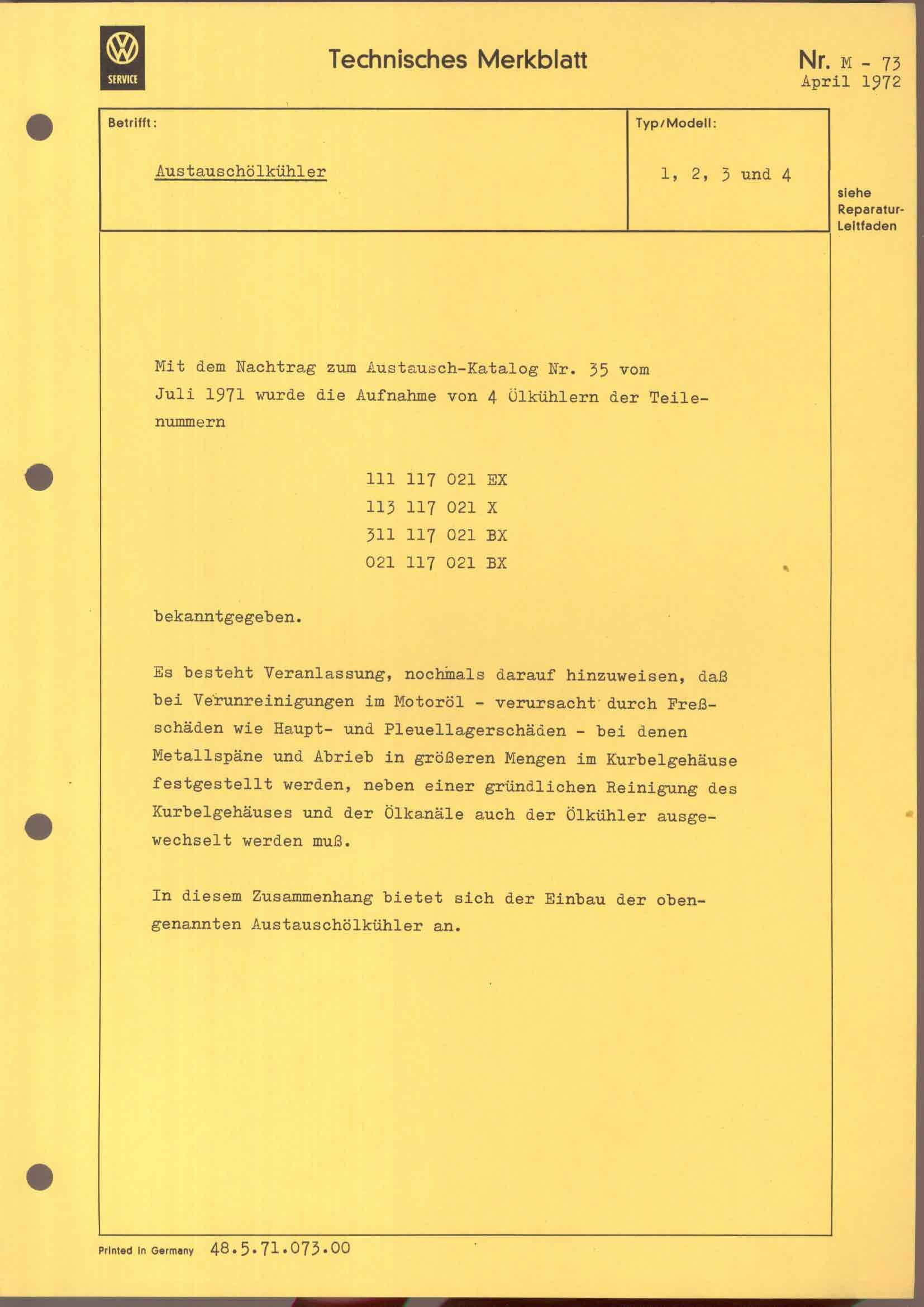 technische Merkblätter M 73, Seite 1