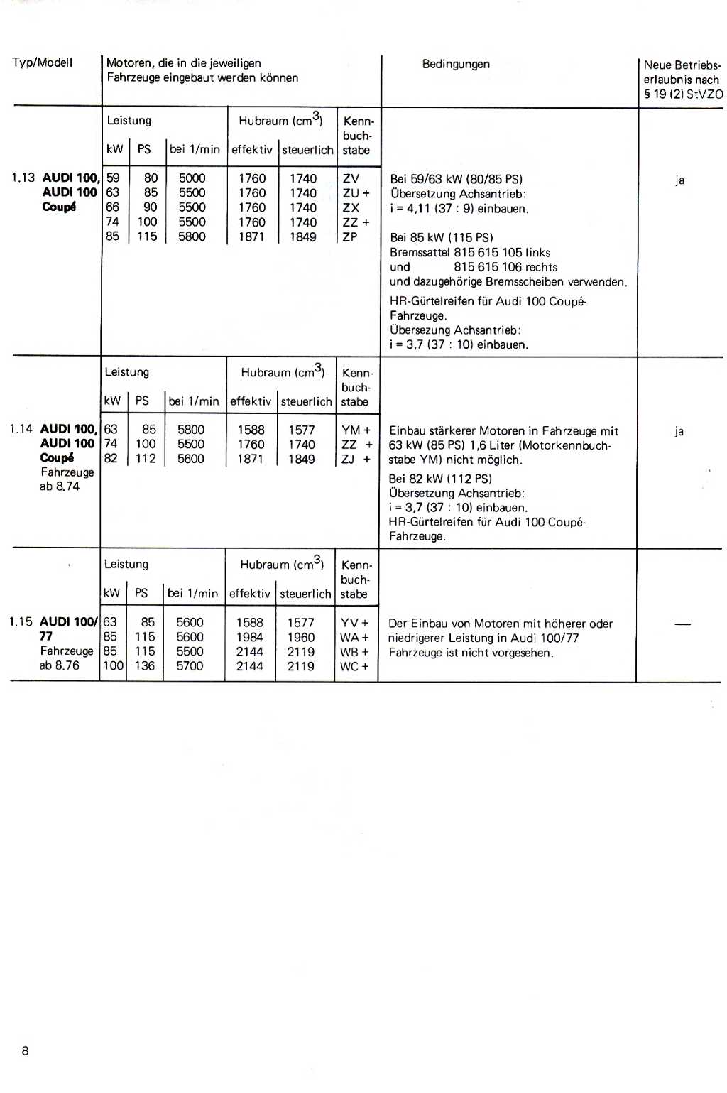 Kundendienst-Ratgeber Änderungen an VW und Audi-Fahrzeugen - Ausgabe Oktober 1977, Seite 8