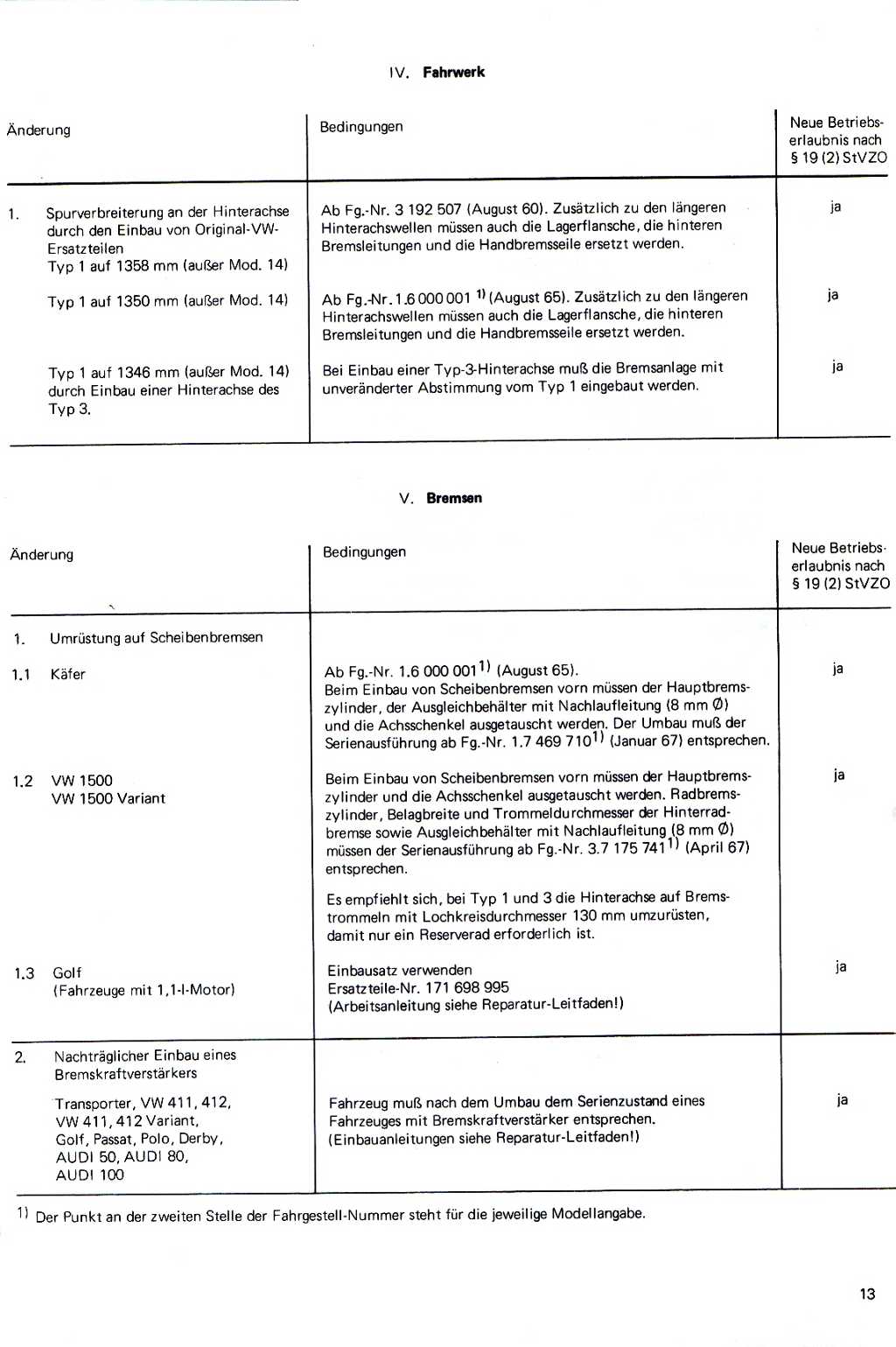 Kundendienst-Ratgeber Änderungen an VW und Audi-Fahrzeugen - Ausgabe Oktober 1977, Seite 13