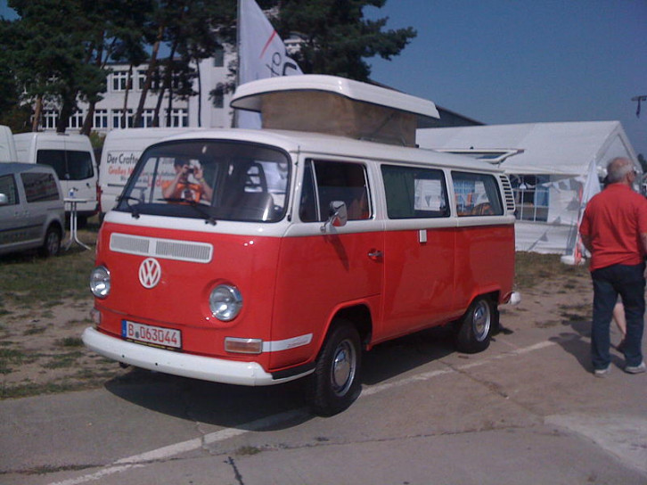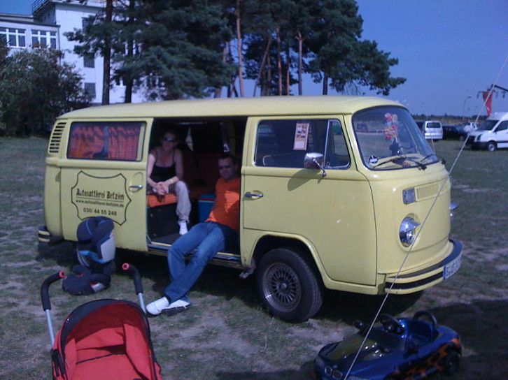Dieses mal stand für den Berliner Klüngeltisch die Fahrt zum 2. VW Bus Festival Berlin südlich von Berlin an. Motto war 30 Jahre T3, daher war das Treffen von T3s und Nachfolgenden dominiert. Nur wenige T2s und noch weniger T1 waren leider dabei. Trotzdem eine schöner Ausflug bei strahlendem Sonnenschein. Mark und ich waren allerdings mit Flachbullis dabei - alias VW Karmann-Ghia Coupés.
